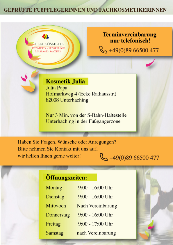 Julia Kosmetik Kosmetik - Fusspflege Massage - Waxing